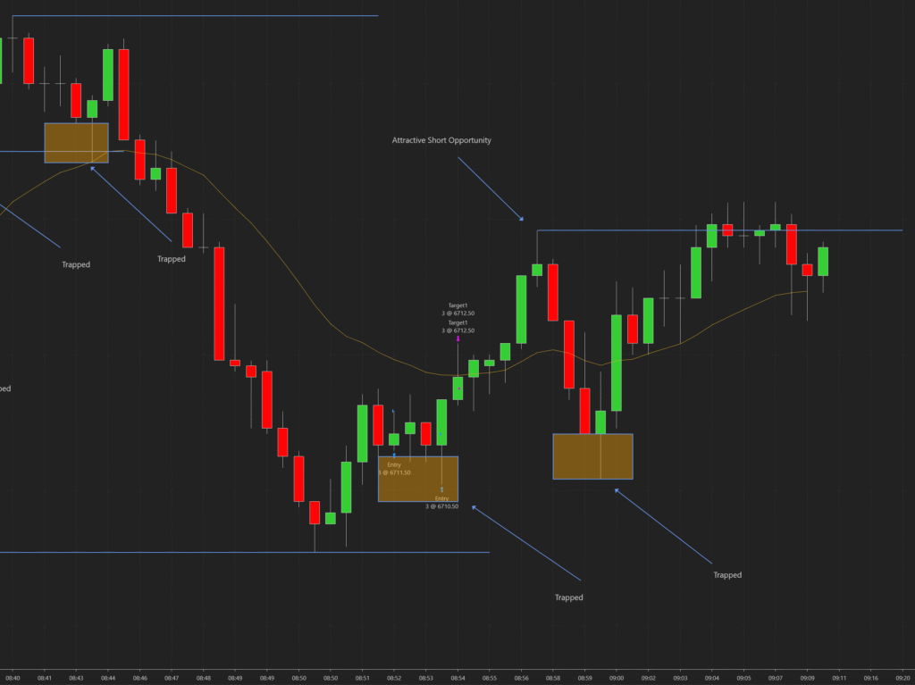 Notice in the next picture, a trade I missed because I wasn’t watching the chart. Once again, it shows an attractive area to sell but ends up getting trapped.