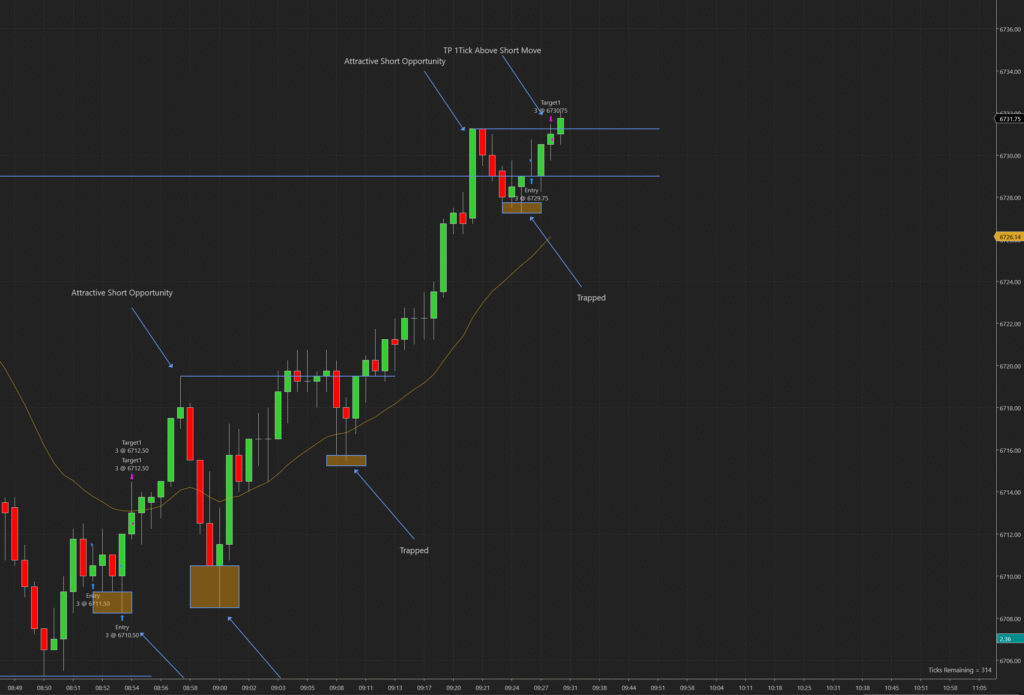 As I am still learning this new system, as I mentioned, I’m not quite sure about my TP. On this trade, I initially targeted 1 tick above the previous high for the stop hunt, but my conscience took over and allowed for a simple +4 ticks.