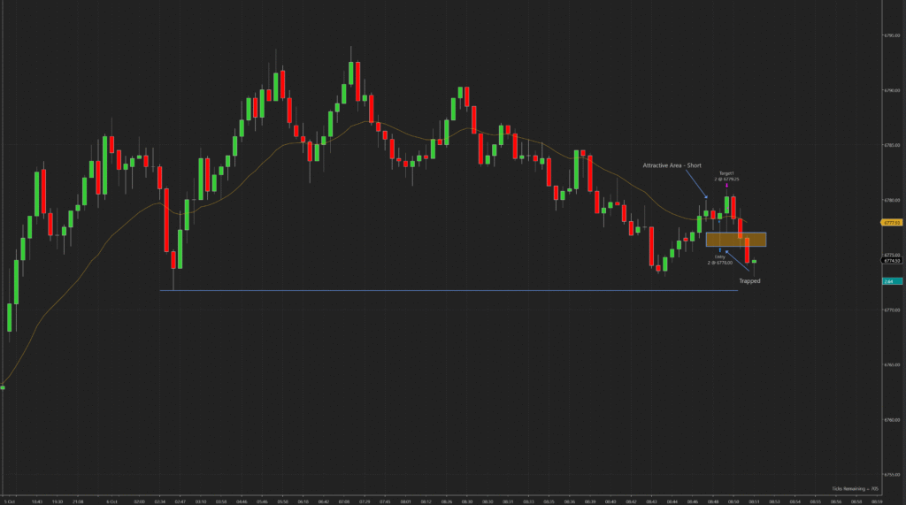 You can see this trap in the orange bar. I quickly entered a stop order and waited for a simple +5 ticks, which was achieved before the price eventually moved in the direction those sellers expected.