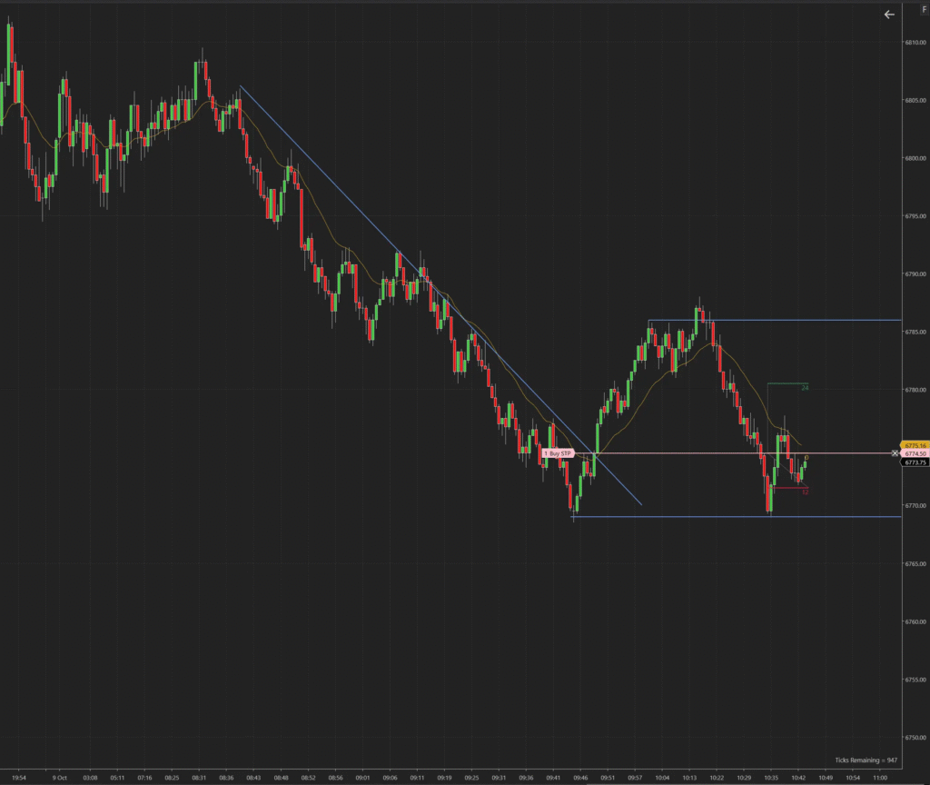 The maximum I will have as a stop loss is 12 ticks, and I will aim for 24. I will let the trade run once it triggers. I will not alter it or touch it at all. It will either win or lose.