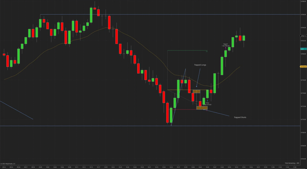 I began to profit from these traps, often with short scalps of 4 to 5 ticks. But I quickly realized it wasn’t sustainable. Not because I couldn’t find the setups, but because my risk-reward ratio was off. A single failed trade would wipe out my gains, and for the method to work, I’d need over 70% winning trades. This wasn’t achievable for me.